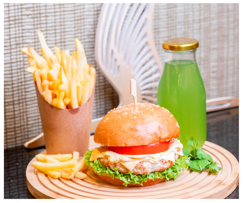 With Fresh patty specially marinated. Dressing with Cheddar Cheese
