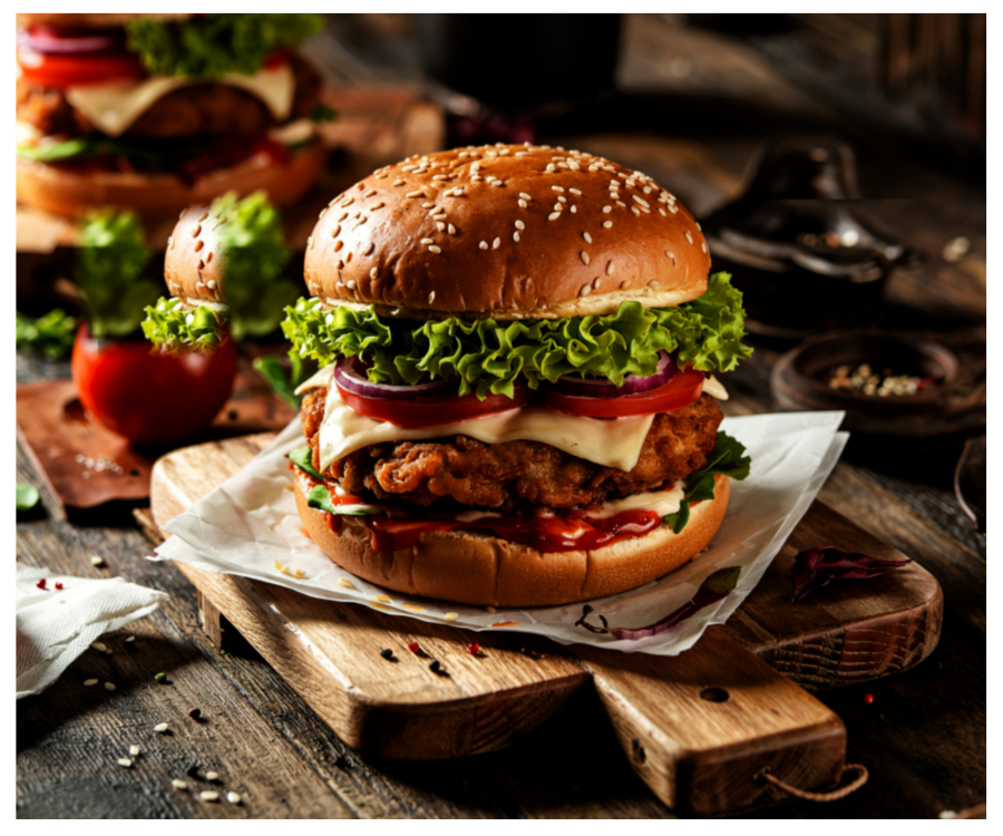 With Freshly Made Chicken Patty with spices, Lettuce, Cheddar Cheese
